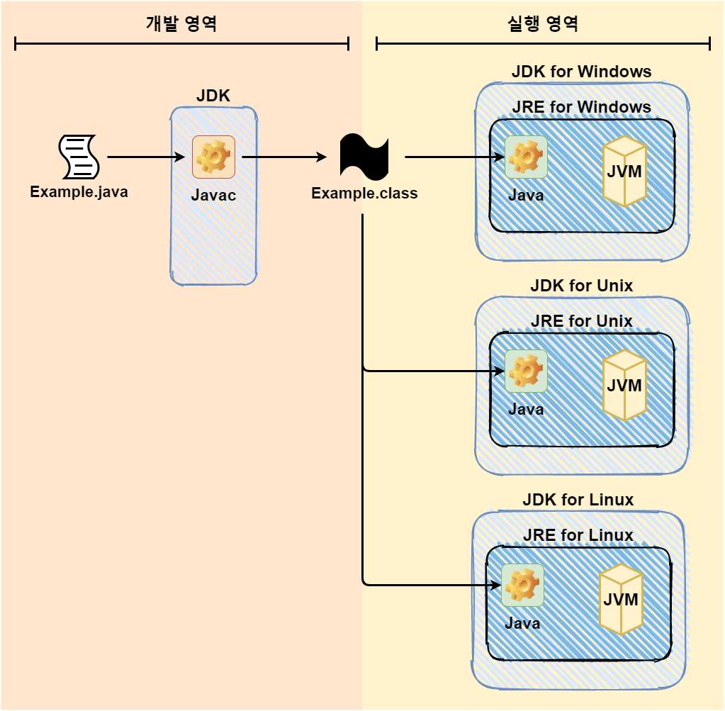 JDK는 플랫폼에 독립적이지 않다. 각 운영체제, 환경 별로 다른 버전이 필요하다. 하지만 각 플랫폼 별로 다른 목적(실행) 파일을 만들지는 않는다. 이에 대해서 알아보자.