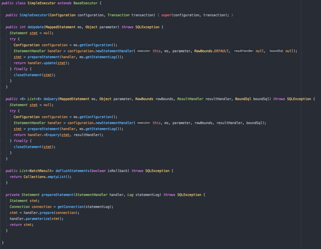 SimpleExecutor는 공식문서의 설명대로 특별한 동작을 하지 않는다.
