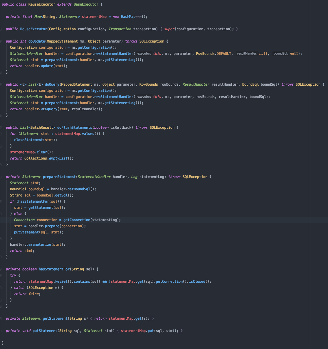 ReuseExecutor는 Map으로 이루어진 statementMap이 존재한다.