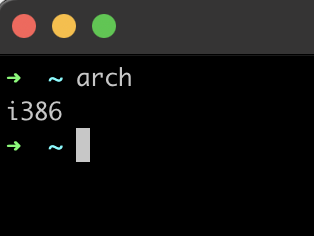5. RiTerm을 실행하고 arch 명령어를 실행해서 cpu type을 확인한다.i386이 나오면 성공!