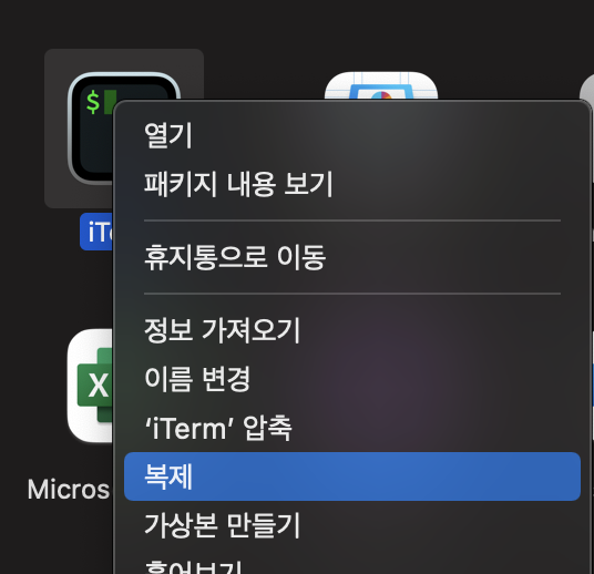 1. 응용 프로그램 폴더로 이동해서 iTerm을 복제해준다.